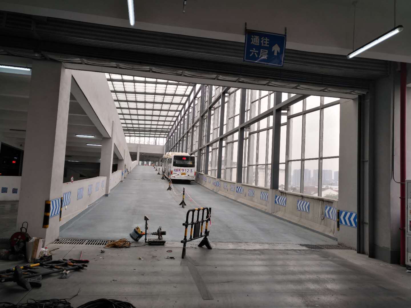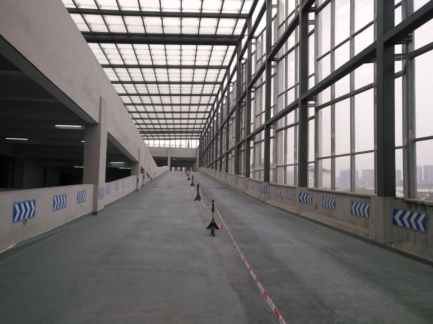 在综合体大楼内部存在大量的坡道,对于公交司机来说坡道防滑性能越高,大型公交车就越容易控制,行驶越安全。我公司根据多年的地坪施工经验,并结合公交综合体的坡道的特殊情况,设计采用高耐磨防滑聚脲材料对坡道面进行处理。